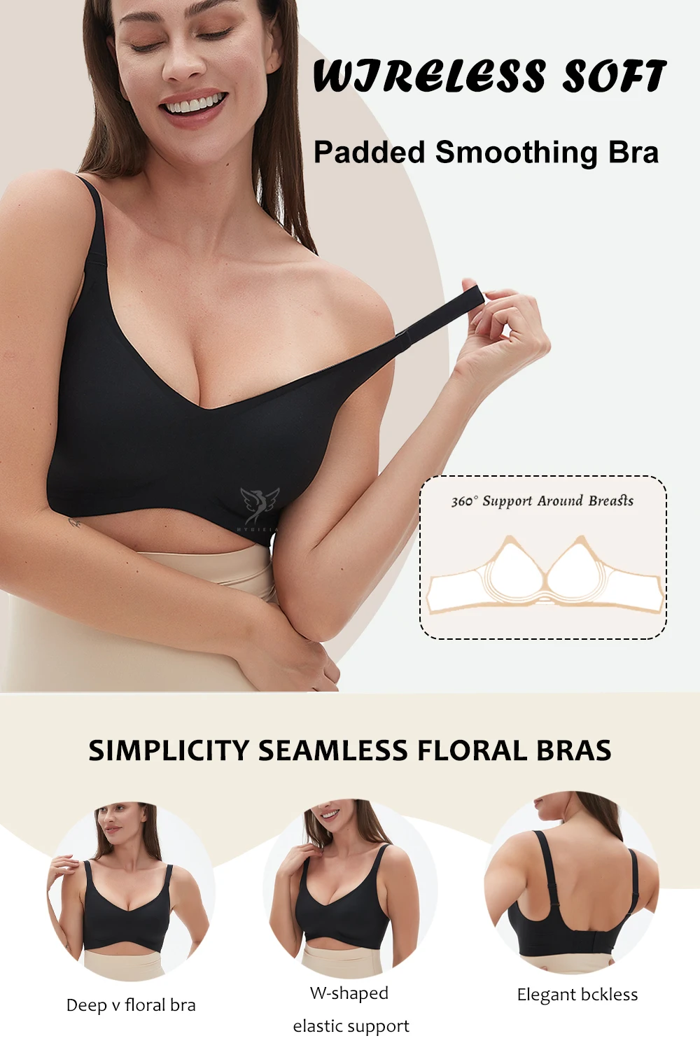 Hygieia Custom Plus Size Deep V Padded Smoothing Full Coverage Everyday Bra Soft Wireless Comfort Supportive Seamless Plunge Bra